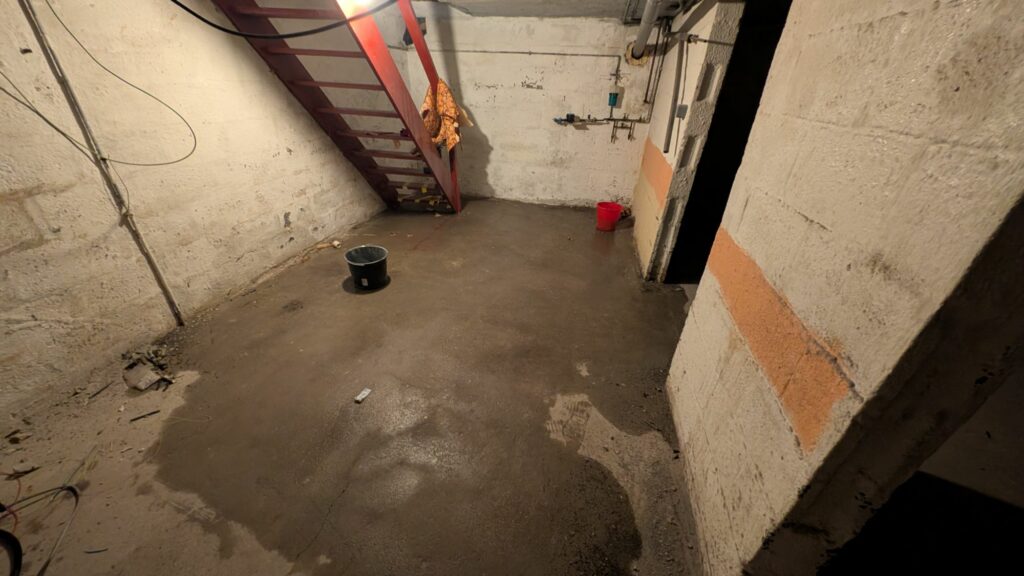 Pour faire l’isolation de la salle de bain, j’ai dû retirer les meubles de la salle de bain. Il n’y a pas de vanne pour fermer l’eau du robinet. J’ai donc coupé l’eau de la maison, dévissé le robinet, retiré les meubles et revissé le robinet. Sauf que je l’ai vissé à la main, en prenant bien soin de vérifier que le joint était en place. C’était la fin de journée, je suis rentré bien fatigué. Le lendemain, je passais au magasin pour acheter 12 sacs de 25kg d’enduit pour compléter les 5 sacs déjà achetés. J’en ai profité pour négocier une petite ristourne vu le volume acheté. Je ne voulais pas laisser 300kg dans la voiture jusqu’au weekend donc je suis retourné sur le chantier pour tout déposer.