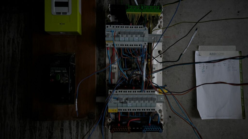 On s’était quitté avec une électricité spartiate et le retour très récent de la lumière dans le salon. Mon père a bien avancé sur l’assemblage du tableau final, avec déjà deux lignes sur trois de terminées. J’ai procédé aux dernières saignées nécessaires au passage des prises et interrupteurs, et je suis fin heureux de vous annoncer que cette partie du chantier approche de sa fin. Certes, il restera les nouveaux volets électriques à brancher, et un trou à prévoir pour raccorder une lumière d’extérieur. Il reste aussi la véranda et le garage à relier, mais l’ensemble des pièces principales sont reliées et fonctionnelles. Ce n’est plus qu’une question de branchement.